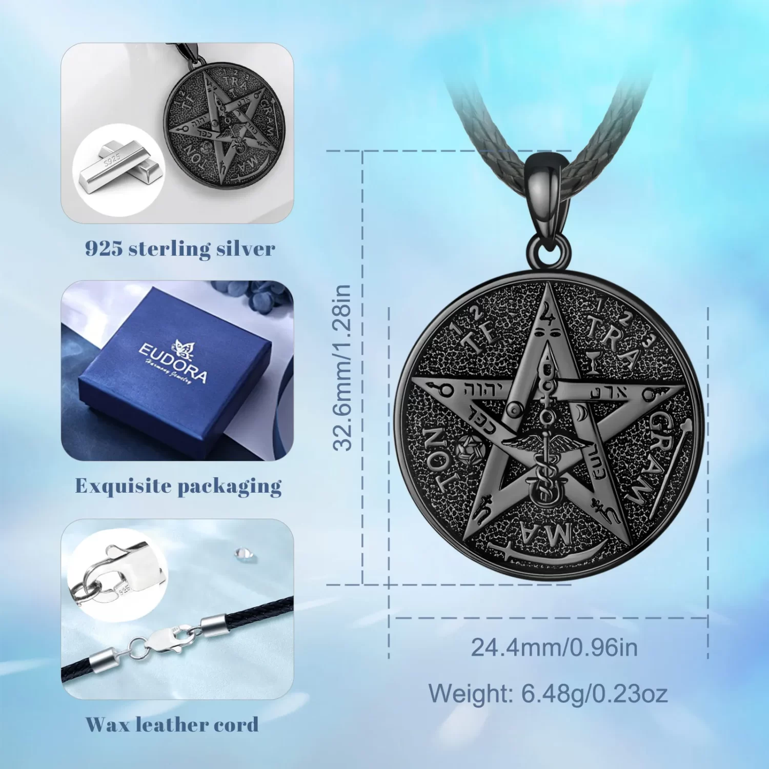 Tetragrammaton Pentacle Blackened 925 Silver Necklace
